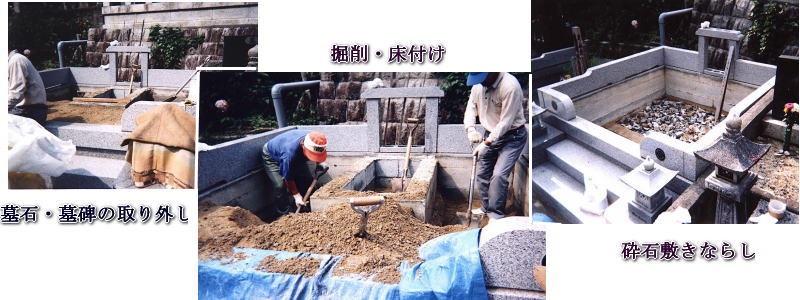 2)石塔・墓碑などの取り外し・基礎工事